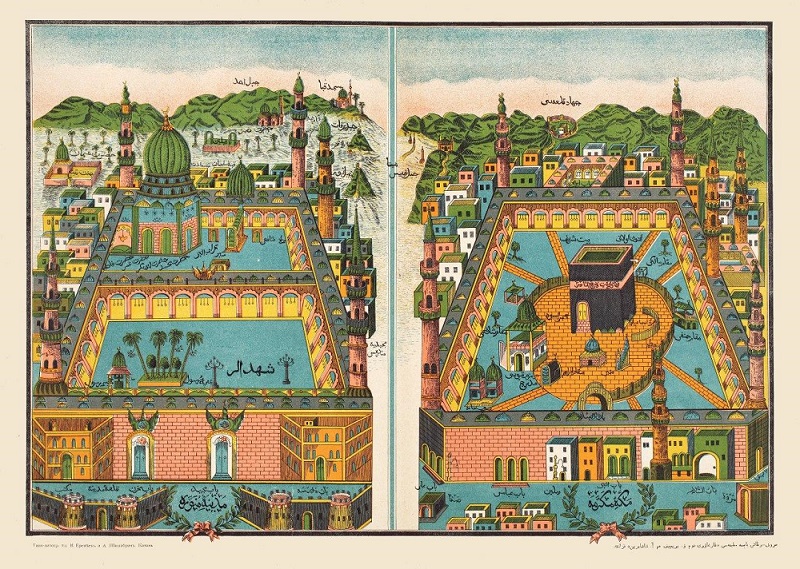 در این نگاره تقریباً تمامی مکانهای مهم اعم از مسجدها، مزارها، کوهها و قلعههای شهرهای مکه و مدینه به چشم میخورد. هر یک از این مکانها به زبان ترکی عثمانی مورد اشاره قرار گرفتهاند. از جمله تصویرهای جالب این نگاره، بخش مربوط به بقیع شریف پیش از تخریب است که در سمت چپ بالای این پوستر به چشم میخورد.