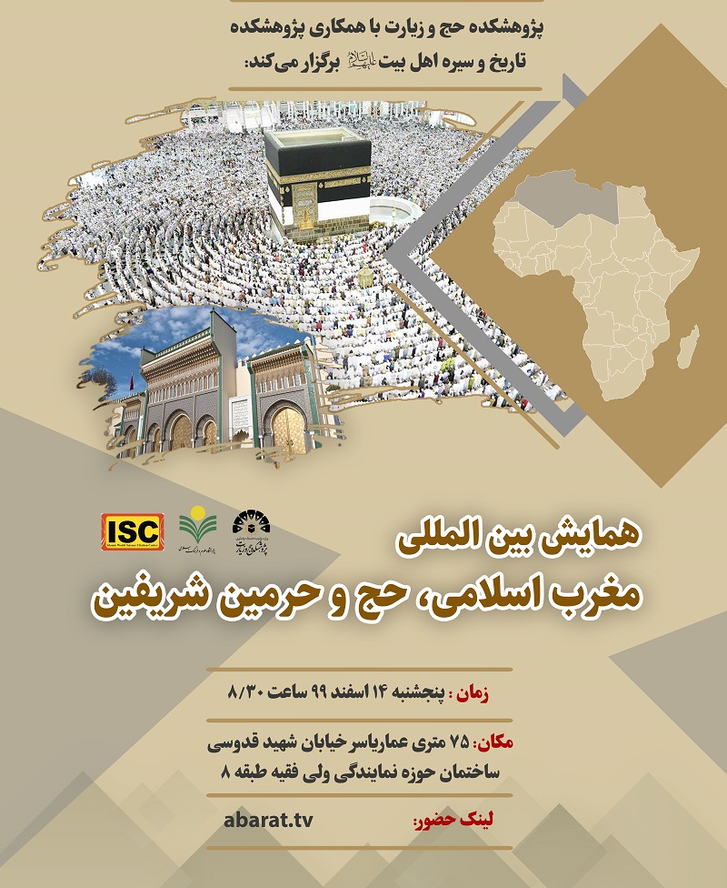 همایش بین المللی مغرب اسلامی حج و حرمین شریفین در روز 5 شنبه 14 اسفندماه 99 از ساعت 30/8 صبح و با حضور و سخنرانی نماینده ولی فقیه در امور حج و زیارت، حجت الاسلام والمسلمین نواب و حجت الاسلام والمسلمین دکتر لکزایی رئیس پژوهشگاه علوم و فرهنگ اسلامی برگزار خواهد شد.