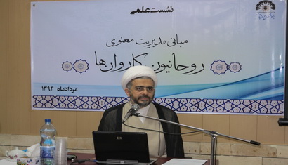 وي بحث مديريت معنوي رامقوله اي دانستند در علم مديريت براي سازمانها كه فرايندها را فعال مي كند. و در معرفي ابزارهاي آن فرمودند: چه بكنيم كه فرايندها در سازمان اثر بهتري بدهند؟ چه عواملي در فرايندهاي زيارتي در هدف سفر تاثير مثبت يا منفي دارد؟ هدف تمام روحانيون كاروانها ارتقاء معنويت است، عوامل منفي و مثبت در اين فرايند چيست؟