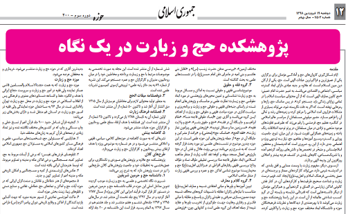 نشریهای که به صورت گاهنامه در حوزههای کلامی، سیاسی، فقهی و اخلاقی منتشر میشود و در هر شماره به موضوعی ویژه با هدف ارتقای بینش روحانیون و کارگزاران حج و زیارت میپردازد.