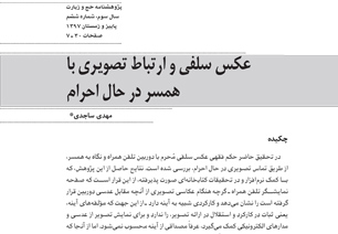 در تحقیق حاضر حکم فقهی عکس سلفی محرم با دوربین تلفن همراه و نگاه به همسر، از طریق تماس تصویری در حال احرام، بررسی شده است. نتایج حاصل از این پژوهش، که بــا کمک نرم افزار و در تحقیقات کتابخانهای صورت پذیرفته، از این قرار اســت که صفحه نمایشــگر تلفن همراه ـ گرچه هنگام عکاسی تصویری از آنچه مقابل عدسی دوربین قرار گرفته است را نشان میدهد و کارکردی شبیه به آینه دارد ـ از این جهت که مؤلفههای آینه، یعنی ثبات در کارکرد و استقلال در ارائه تصویر، را ندارد و برای نمایش تصویر از عدسی و مدارهای الکترونیکی کمک میگیرد، عرفاً مصداقی از آینه محسوب نمیشود. اما از آنجا که ملاک حرمت نگاه مُحرم در آینه، قصد تزیین است، مقصود از نگاه به تصویر منعکس شده در صفحه نمایشــگر هنگام عکاســی نباید قصد تزیین باشد. ازاینرو ثبت عکس شخصی توسط مُحرم با این قید، مجاز به نظر می رسد. همچنین فقها نگاه شهوی مُحرم به همسر را جایز نمیدانند. ازاین رو جواز نگاه محرم به همسر در تماس تصویری، به خالی بودن نگاه او از شــهوت منوط است و بدون این قید، مشــاهده همسر هنگام برقراری تماس تصویری مجاز نیست.