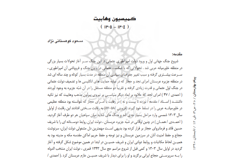 شروع جنگ جهانى اول و ورود دولت امپراطورى عثمانى در اين جنگ ســر آغاز تحولات بسيار بزرگى در منطقه خاورميانه عربى شد . تحولاتى كه با شكست عثمانى در پايان جنگ و فروپاشى آن امپراطورى ، ســرعت بيشــترى گرفته و سبب تغيير جغرافياى سياسى آن منطقه در مدت بسيار كوتاه و چند ساله اى شد.