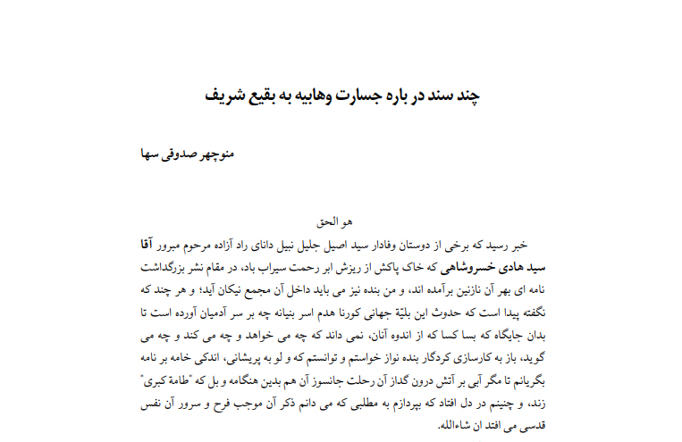 چند سند در باره جسارت وهابیت به بقیع شر یف (