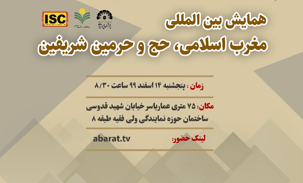 همایش بین المللی مغرب اسلامی حج و حرمین شریفین در روز 5 شنبه 14 اسفندماه 99 از ساعت 30/8 صبح و با حضور و سخنرانی نماینده ولی فقیه در امور حج و زیارت، حجت الاسلام والمسلمین نواب و حجت الاسلام والمسلمین دکتر لکزایی رئیس پژوهشگاه علوم و فرهنگ اسلامی برگزار خواهد شد.