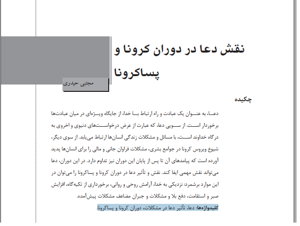 کلیدواژهها: دعا، تأثیر دعا در مشکلات، دوران کرونا و پساکرونا