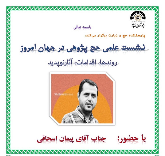 به مناسبت هفته پژوهش، نشست علمی «حجپژوهی در جهان امروز» با سخنرانی جناب آقای پیمان اسحاقی روز سهشنبه (23 آذر 1400) ساعت 10 صبح در پژوهشکده حج و زیارت برگزار میشود.