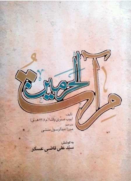 ترجمه فارسی جلد اول و دوم کتاب مرآت الحرمین، نوشته ایوب صبری پاشا (درگذشت ۱۳۰۸ق.)، از فضلا و صاحب منصبان دولت عثمانی است. اصل کتاب در پنج جلد درباره تاریخ مکه و مدینه به زبان ترکی نوشته شده است. دو جلد اول این کتاب که مشتمل بر تاریخ مکه است، توسط میرزا عبدالرسول منشی از مترجمان دارالترجمه ناصری و به دستور ناصرالدین شاه، در سال ۱۳۰۷ هجری قمری از ترکی استانبولی به فارسی ترجمه شده است. کتاب حاضر تصحیح دو جلد ترجمه فارسی است. در این کتاب، ایوب صبری پاشا اطلاعاتی درباره اوضاع و احوال حرمین شریفین در طی سالهای ۱۲۸۹ تا ۱۲۹۹ هجری قمری ارائه کرده است. موقعیت جغرافیایی مکه، وضعیت بناهای معظم آنجا، شکل خانه های اهالی مکه، آب و هوا، گیاهان، بیماری های رایج در مکه، چگونگس ساخت کعبه و تغییرات و بازسازی های آن در طول تاریخ، فضایل کعبه، ویژگیهای زندگی مردم در مکه از جمله موضوعات این کتاب هستند.