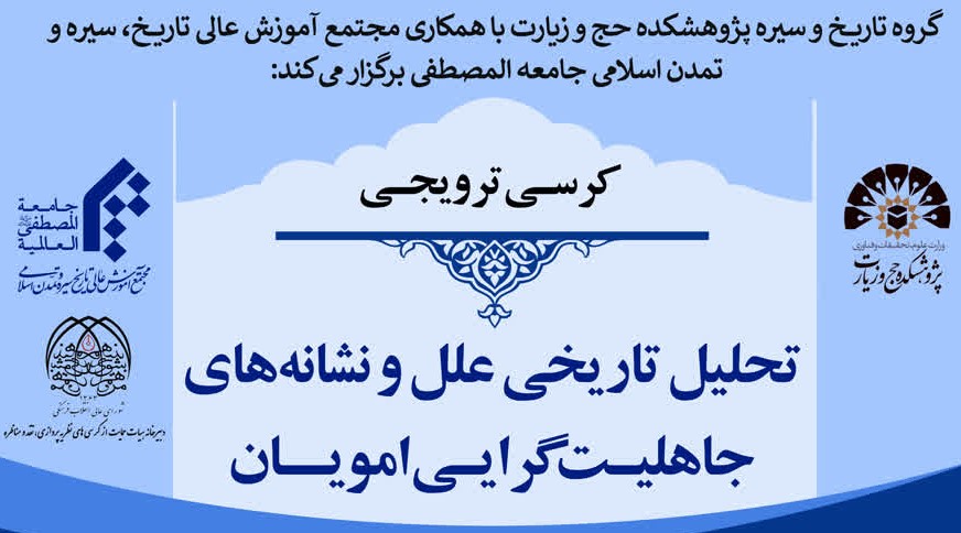 گروه تاریخ و سیره پژوهشکده حج و زیارت با همکاری مجتمع آموزش عالی تاریخ، سیره و تمدن اسلامی جامعه المصطفی، کرسی ترویجی «تحلیل تاریخی علل و نشانه‌های جاهلیت‌گرایی امویان» را در چهارشنبه 24 مرداد 1403 ساعت 10 صبح در محل پژوهشکده حج و زیارت برگزار می‌کند.