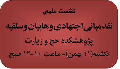 نشست علمي «نقد مباني اجتهادي وهابيان و سلفيه» توسط گروه كلام و معارف پژوهشكده حج و زيارت برگزار مي شود
