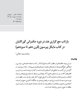 در این نوشته خلاصهای از مطالب کتاب فوق الذکر ـ که به ابعاد اجتماعی، سیاسی و فرهنگی حجگزاری هند در قرنهای دهم تا سیزدهم هجری میپردازد ـ ارائه میشود. در گزارش این کتاب، به تحلیلها و آمارهای ارائه شده در کتاب توجه شده و به ترتیب فصلهای کتاب، پس از معرفی منابع و آثار پژوهشی مرتبط با موضوع پژوهش و بیان اهداف و ضرورتها و دشواری کار، به تاریخ حج در آغاز عصر جدید و در حقیقت در دوره مورد بحث اشاره میشود. در فصل بعدی به جایگاه کانونی حج در اندیشه اجتماعی و معنوی مسلمانان و در فصل بعد، به مناسبات پادشاه مغول هند در دوره مورد مطالعه با حج و حرمین پرداخته شده است.